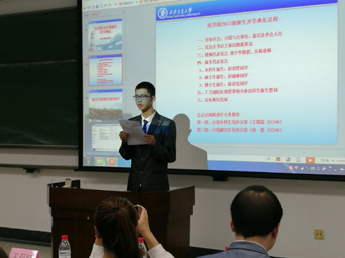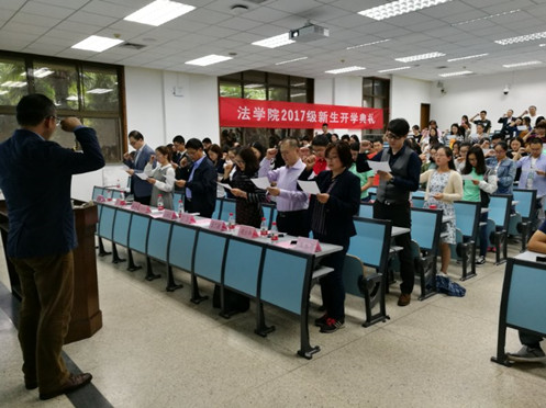 金秋送爽,丹桂飘香。9月9日下午,乐动(中国)官方网站2017级新生开学典礼在主C105隆重召开。乐动(中国)官方网站党总支书记王保民、文治书院院主任张爱萍、乐动(中国)官方网站副院长丁卫、院长助理吉兰湘、法复合61班班主任王玉苹、法71班班主任李琳以及乐动(中国)官方网站2017级全体本科生、硕士生、博士生新生参加了开学典礼。开学典礼由学生工作专职委员张乃钟老师主持。