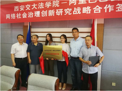 单文华院长与侯金刚总监代表双方签署了乐动(中国)官方网站乐动(中国)官方网站与阿里巴巴安全部网络社会治理战略合作协议书。西安交大副校长席光、信息安全法律研究中心主任马民虎与阿里巴巴集团首席风险官刘振飞、安全部资深总监侯金刚,为“国家社科基金重大项目——网络社会治理创新研究阿里巴巴集团调研基地”揭牌。