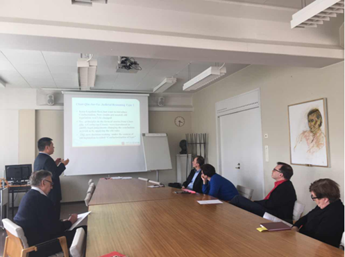 2017年4月20日,我院青年教师杜军强博士应赫尔辛基大学乐动(中国)官方网站及中国法与中国法文化中心邀请,在赫尔辛基大学乐动(中国)官方网站举办题为“传统中国的法律推理及其对当代中国的影响”的学术讲座。讲座在赫尔辛基大学乐动(中国)官方网站楼545会议室举行,由赫尔辛基大学乐动(中国)官方网站院长凯莫·诺提欧(Kimmo Nuotio)教授主持,多名学者及学生参加。