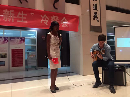 冷餐会上,乐动(中国)官方网站师生在品尝美味的水果、点心的同时,一起欣赏了师生们带来的精彩表演。来自马里的留学生吴茜同学带来一首充满异域风情的民族歌曲,让同学们领略到不同文化的色彩。来自澳大利亚的留学生多米尼克和研一新生刘静洁分别用英语和法语共同演绎了诗朗诵《再别康桥》。中文经典诗歌在其他语言的演绎下显得别具一格。研一新生唐雅雯身着中国古典服装,向留学生们展示了我国传统舞蹈《惊鸿舞》,令人惊艳。研一新生蒲凯云、刘敏丹、田思艺,本科新生吴彦博分别为大家带来了动听的歌曲,赢得了现场的喝彩与掌声。在欢乐的气氛中,吉兰湘老师用日语为大家演唱的歌曲《我只在乎你》,赢得大家的阵阵掌声;张乃钟老师演唱的豫剧选段《谁说女子不如男》,字正腔圆、韵味醇厚,受到了师生们的热烈欢迎。