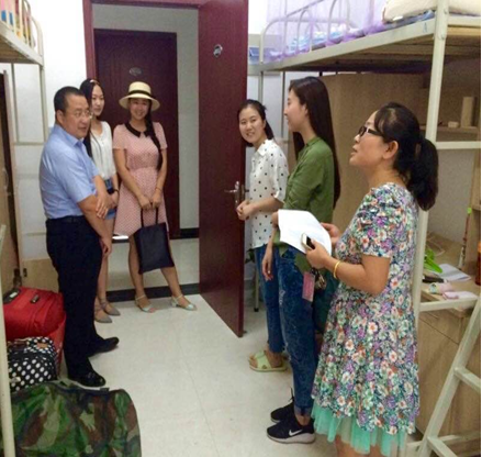 李万强副院长仔细查看了同学们的住宿条件,每走进一间宿舍,都向同学们致以亲切的问候,并代表学院对同学们的到来表示热烈的欢迎。继而关切地询问她们的具体情况,来自什么地方、入学手续办理的情况等。同时,张乃钟老师细心地询问同学们是否适应新的环境,有什么困难,希望同学们遇到问题一定要与老师沟通。随行的学生干部,也借此机会认识了乐动(中国)官方网站注入的新鲜血液,与新生热情得展开交流。