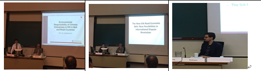 本次国际会议为期两天,是在新丝路乐动(中国)官方网站联盟框架下举办的一次高水平、跨学科的高端国际会议。来自海内外著名高校的专家学者分别就“丝路倡议与法治、价值”、“丝路倡议的哲学与文化模式”、“丝路倡议与身份认同”、“人员流动与移民:以往的经验与未来的发展”、“丝路倡议的治理问题”等五方面的议题展开热烈研讨。我校乐动(中国)官方网站胡德胜教授、David Holloway教授、GuilhermeVilaça博士、杜军强博士、王朝恩博士以及博士生冯韵雅分别以“中国企业在一带一路国家投资时的环境责任问题”、“新丝绸之路与国际争端解决的新机遇”、“丝绸之路倡议的文化与哲学思考”、“中国的法律与秩序:从历史到现实”、“社会责任条款与投资保护:是否和如何在中国的丝绸之路经济带投资条约体制中进行协调”和“构建新的中国-中亚投资关系法律框架:以丝绸之路经济带政策为背景的考察”为题做了专题学术报告。