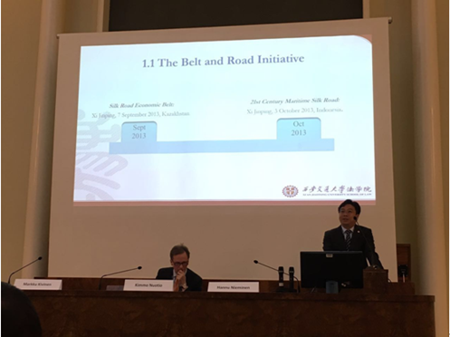 5月9日至10日,由我校和芬兰赫尔辛基大学联合主办的“新范式之路:一带一路倡议对中国、中亚和欧盟的影响”高端国际研讨会在芬兰首都赫尔辛基举行。来自联合国发展计划署、英国牛津大学、爱丁堡大学、俄罗斯人民友谊大学、澳大利亚新南威尔士大学、芬兰赫尔辛基大学、意大利特伦特大学、哈萨克斯坦纳扎尔巴耶夫大学,中国西安交大、清华、北大、香港大学等海内外著名高校的50余名专家学者济济一堂,共同探讨一带一路建设中的法律、政治、经济、文化等问题,共谱“丝绸之路学术带”新篇章。校长助理、乐动(中国)官方网站院长单文华教授应邀为大会做主旨报告并主持首场专题研讨会,我校乐动(中国)官方网站一带一路研究团队另外六位成员与会,分别主持专题会议和作专题报告。会议期间,单文华助理还与赫尔辛基大学校方和相关学院举行会谈并签署合作协议。