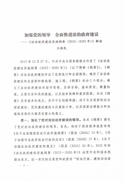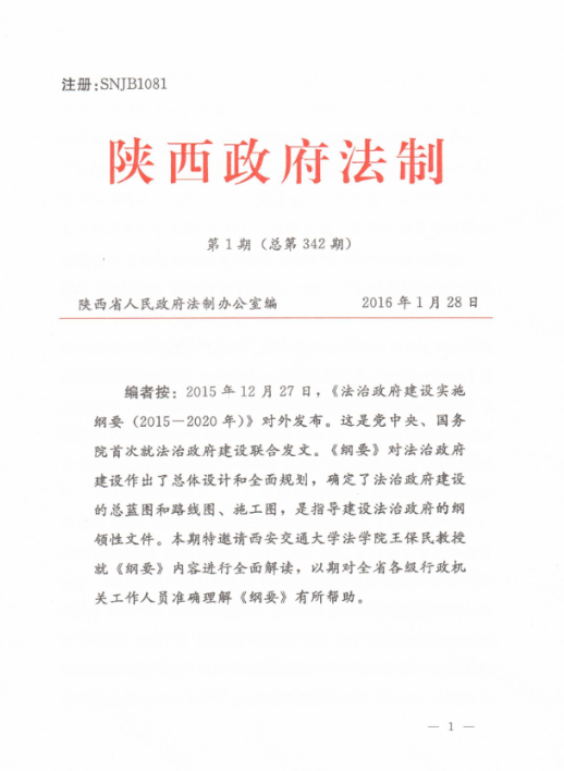 2015年12月27日,《法治政府建设实施纲要(2015-2020年)》对外发布。陕西省人民政府法制办公室邀请了乐动(中国)官方网站乐动(中国)官方网站王保民教授就《纲要》内容进行了全面解读,解读内容被采纳报省领导,送省属各机关,省法院、检察院,各市、县(区)人民政府,发各级政府法治工作机构,以期对全省各级行政机关工作人员准确理解《纲要》有所帮助。