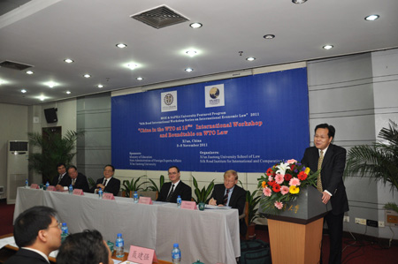 作为教育部2011学校特色外专项目之一,首届“丝绸之路国际经济法高级国际研讨班系列——中国入世十年WTO法国际研讨班与圆桌讨论会”于11月4日上午在西安交大科学馆207隆重开幕。我国原驻英国大使马振岗、商务部条法司原司长张玉卿、世界贸易组织规则司司长Johann Human、瑞士伯尔尼大学世界贸易研究所所长Thomas Cottier、西安交大副校长卢天健、陕西省法学会研究部主任魏清利等出席开幕式。乐动(中国)官方网站院长兼丝绸之路国际法与比较法研究所所长单文华教授主持开幕式。