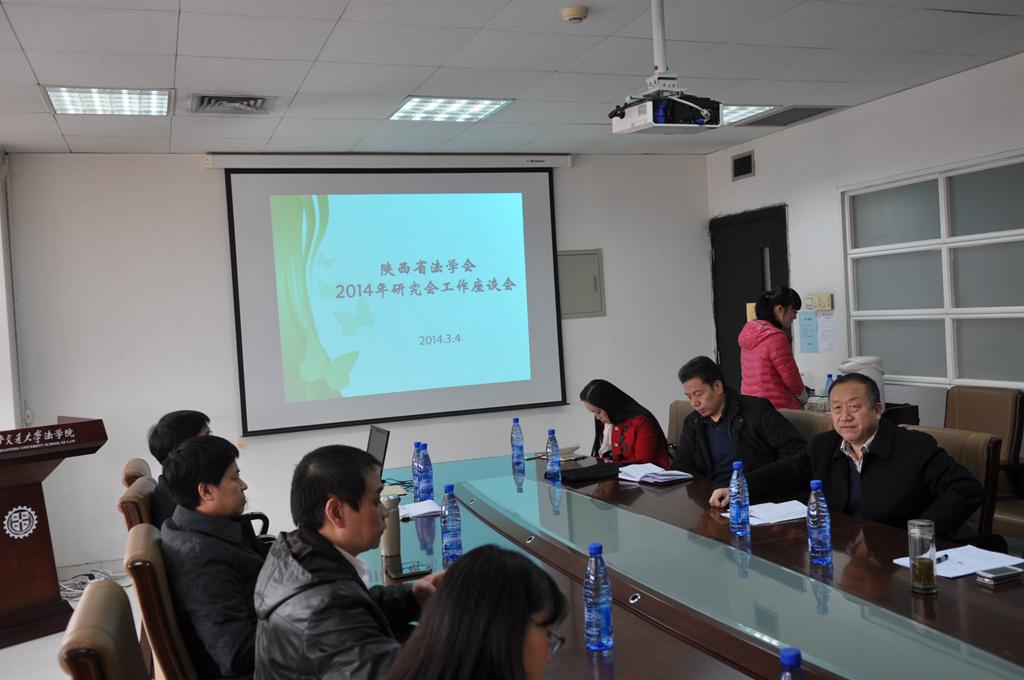 2014年3月4日下午,“陕西省法学会2014年研究会工作座谈会”在我校乐动(中国)官方网站主E910会议室召开,陕西省法学会专职副会长雷宝生,秘书长马艾妮,研究部主任魏清利,办公室主任樊志来等法学会领导参加了会议。陕西省法学会挂靠我校乐动(中国)官方网站的“科技法研究会”、“信息安全法研究会”、“立法学研究会”和“能源法研究会”的会长和秘书长应邀参加了座谈会。会议由陕西省法学会专职副会长雷宝生主持。