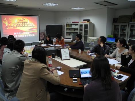 11月20日晚8点,乐动(中国)官方网站举办了学习十八大报告法治思想研讨会,由学院副院长、知识产权研究中心主任马治国教授、李晓鸣讲师组织,部分博士、硕士参加。