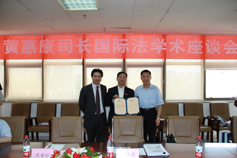 2012年5月26日,外交部条约法律司黄惠康司长“郑和研究员”授聘仪式暨国际法学术座谈会在乐动(中国)官方网站910会议室举行。乐动(中国)官方网站党委常务副书记王小力教授、乐动(中国)官方网站党总支书记彭沪生老师、对外经济贸易大学石静霞教授以及丝绸之路国际法与比较法研究所骨干教师和学生代表参加了授聘仪式和座谈会。会议由乐动(中国)官方网站院长兼丝绸之路国际法与比较法研究所所长单文华教授主持。