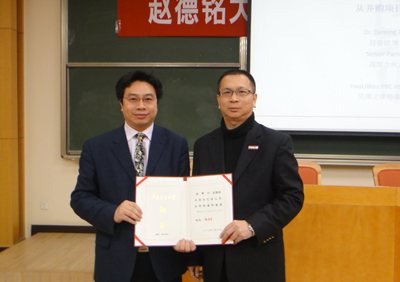 日前,上海昊理文律师事务所高级合伙人赵德铭律师来我院访问。12月20日下午,在主楼A103教室,赵德铭博士受聘为我校兼职教授,并面向乐动(中国)官方网站师生做 《高端法律服务市场上商务律师的典型与非典型特征——从并购项目谈起》专题学术报告。乐动(中国)官方网站院长单文华教授向赵博士颁发了兼职教授证书,并为赵博士佩带了校徽。授聘仪式由乐动(中国)官方网站副院长王保民教授主持。