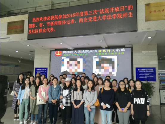 为了达到最佳教学效果,将课程设定的庭审活动内容与西安市碑林区法院2018年度第三次“法院开放日”对接起来,5月10日(星期四)上午我院30多名法律硕士研究生在马治国老师、张冰老师的带领下一同前往碑林区人民法院进行庭审、交流、研讨、学习。