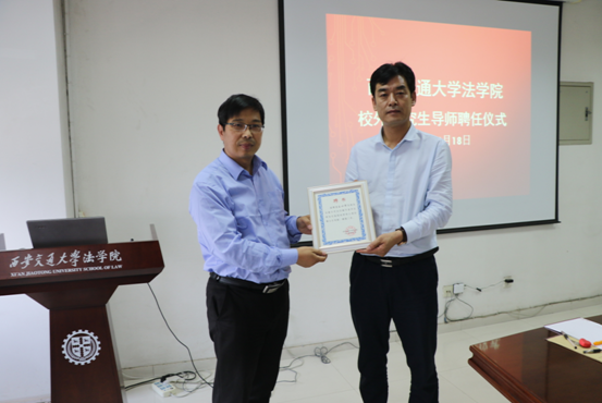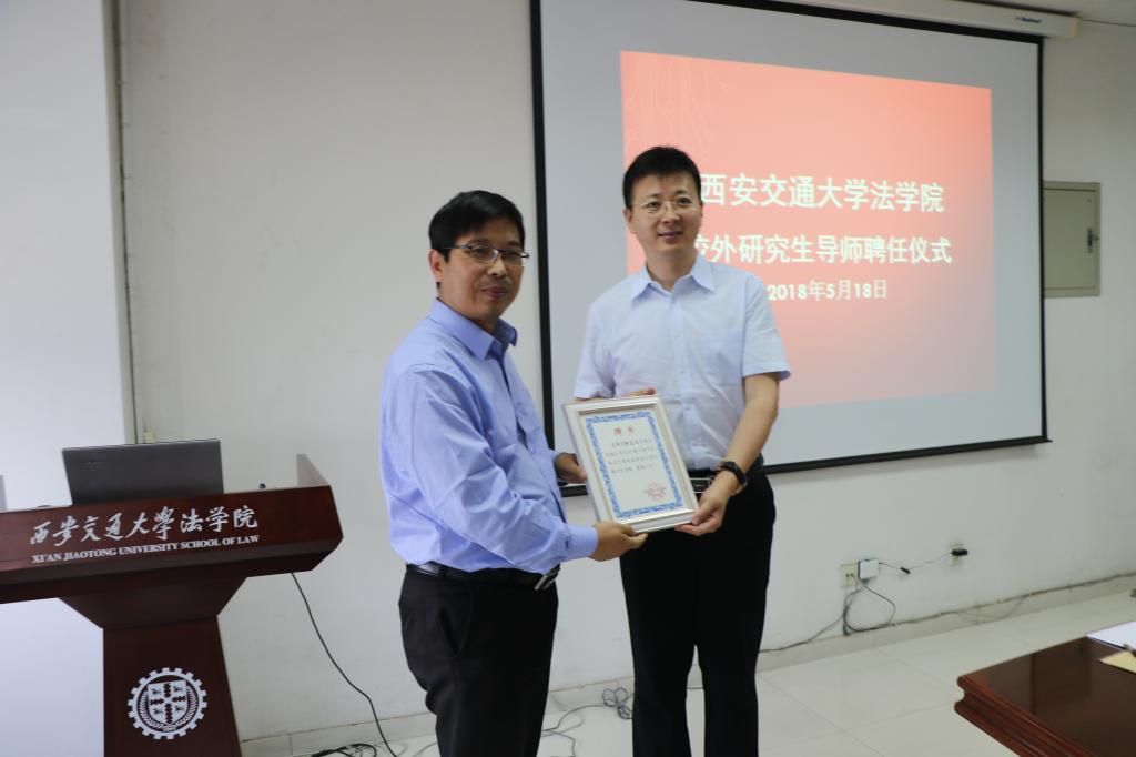 2018年5月18日下午,乐动(中国)官方网站乐动(中国)官方网站法律硕士研究生“协同培养育人项目”校外导师(首批)聘任仪式暨专业实践课程教学研讨会在兴庆校区教学主楼910会议室举行。乐动(中国)官方网站党总支书记王保民教授、副院长李万强教授、副院长丁卫副教授,院长助理张生副教授、教师代表吴锐讲师和研究生代表参加了聘任仪式。