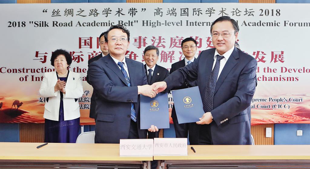 http://www.cnr.cn/sxpd/shgl/sf/20180713/t20180713_524300186.shtml(西安市与西安交大签约建设“一带一路”中央法务区和国际争端管理中心)