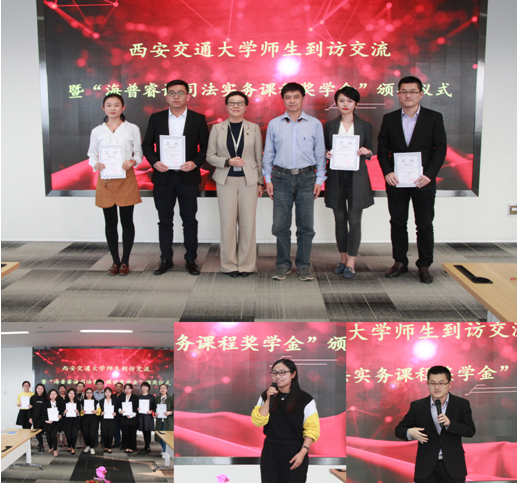 10月17日下午,西安交大乐动(中国)官方网站马治国教授带领三十四名法学与法律硕士研究生前往海普睿诚律师事务所学习交流,并与律师事务所业务部门主任、合伙人、行政总监及客户主管就实务经验、职业规划等问题进行了深入座谈交流,并为上一届该课程成绩优秀的学生颁发了“海普睿诚司法实务课程奖学金”。