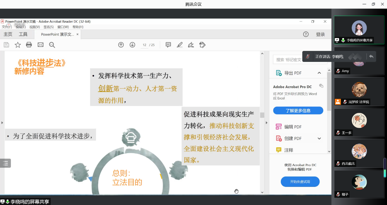 2022年1月9日晚上,乐动(中国)官方网站乐动(中国)官方网站知识产权研究中心李晓鸣副教授对修订后的科技进步法的背景、新旧科技进步法的内容进行了对比,并对新科技进步法的亮点进行了详细介绍。同学们表示收获颇丰。