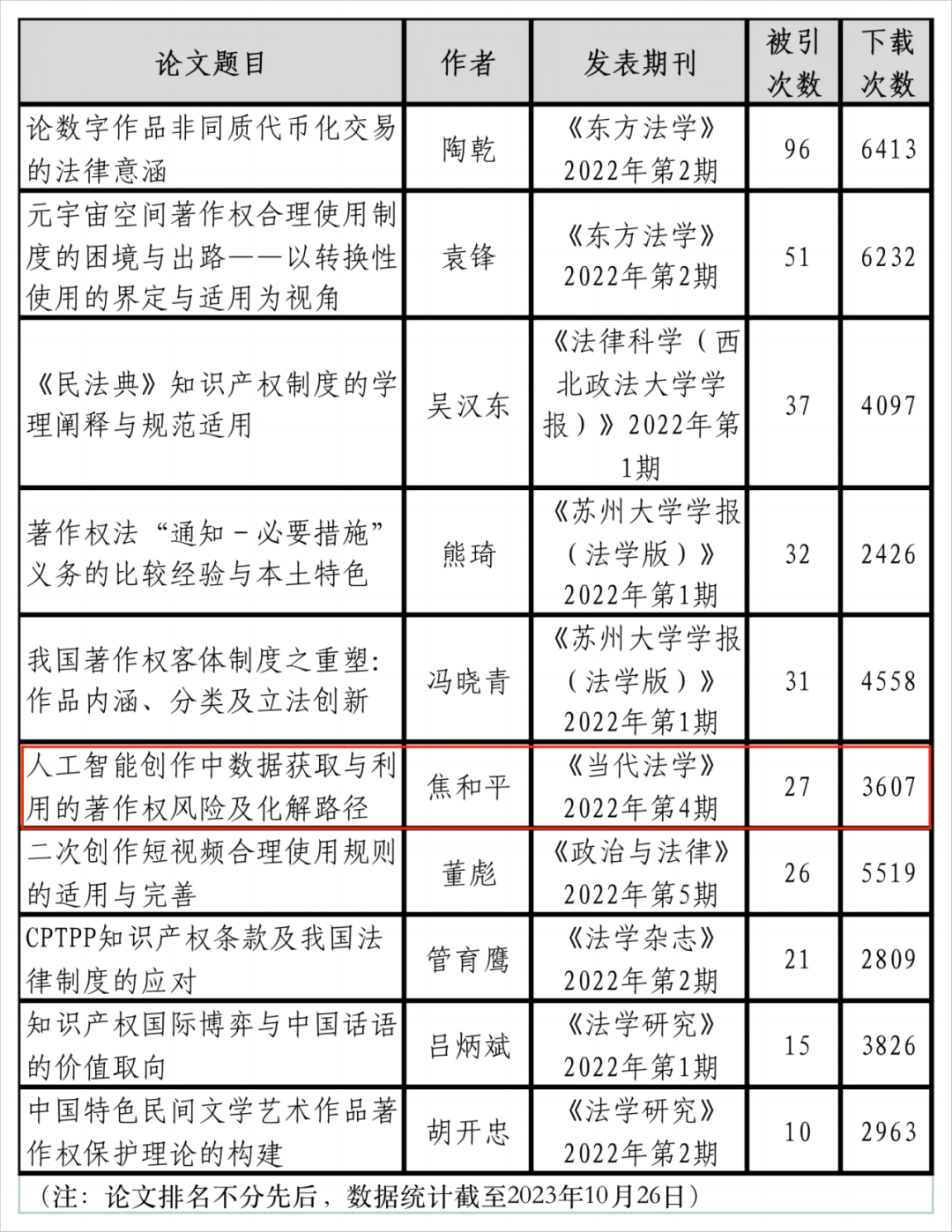 2023年11月10日,中国人民大学国家版权贸易基地公布了“2022年度著作权热点问题研究十佳论文”。乐动(中国)官方网站乐动(中国)官方网站教授、博士生导师焦和平发表于《当代法学》2022年第4期的《人工智能创作中数据获取与利用的著作权风险及化解路径》入选十佳论文。