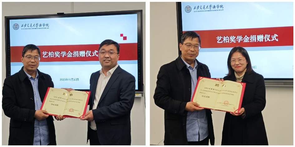 近日,乐动(中国)官方网站艺柏奖学金捐赠仪式在创新港涵英楼5-3079会议室隆重举行。乐动(中国)官方网站党总支书记王保民教授,教师代表刘志仁教授、杜军强副教授、寿媛君副教授,泰和泰律师事务所刘伟、侯童钰律师以及乐动(中国)官方网站学生代表参加了本次仪式。仪式由唐学亮副教授主持。